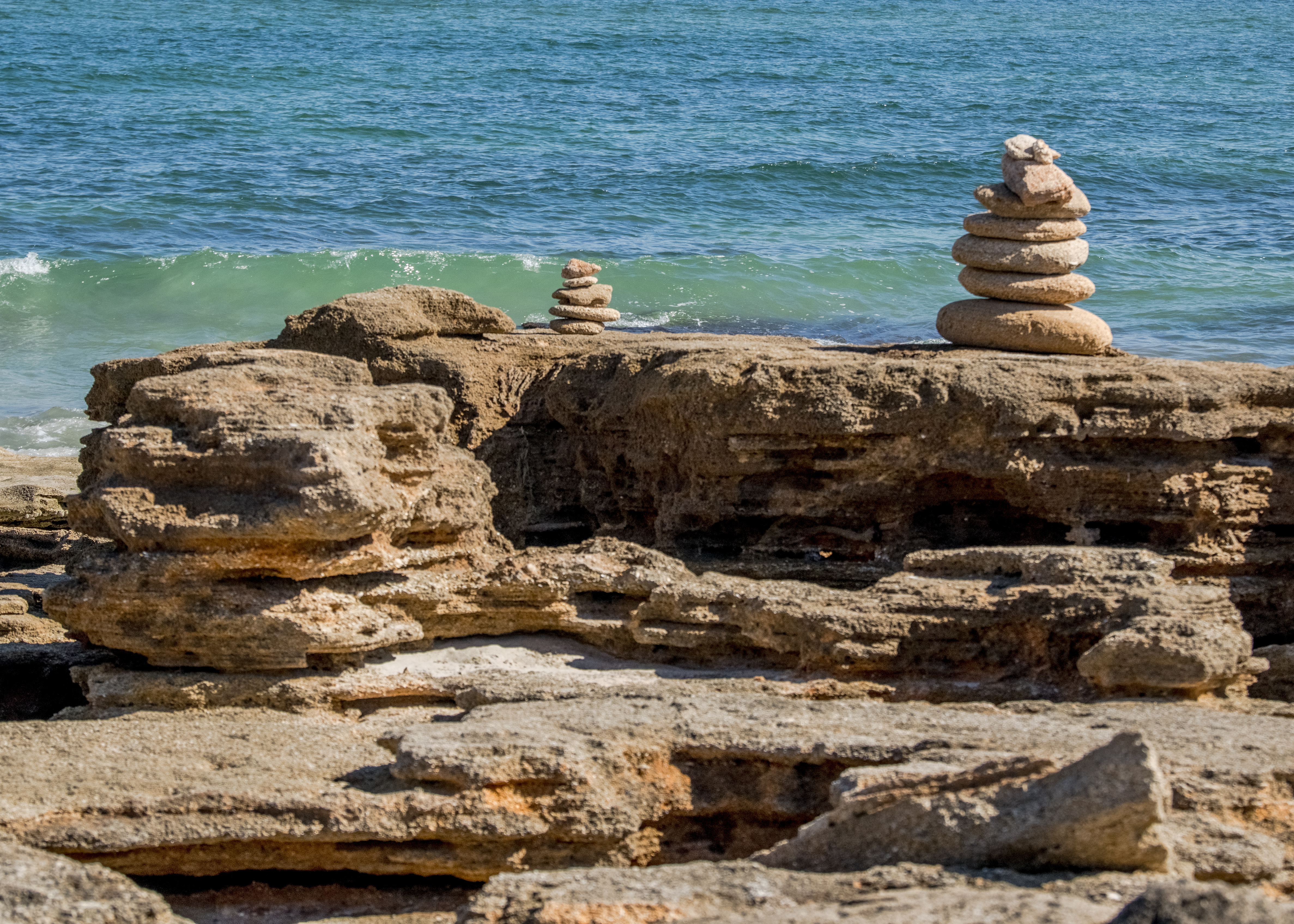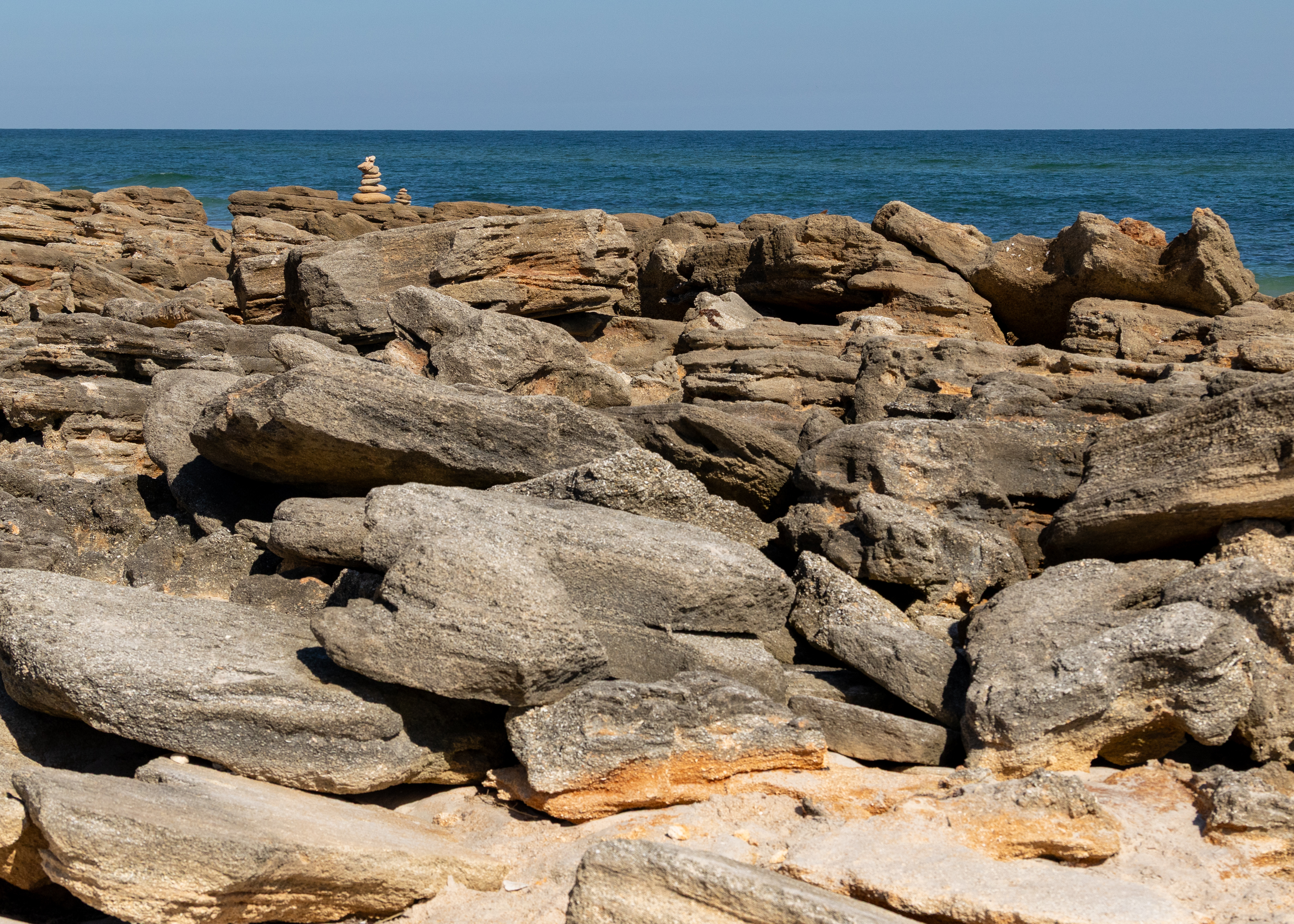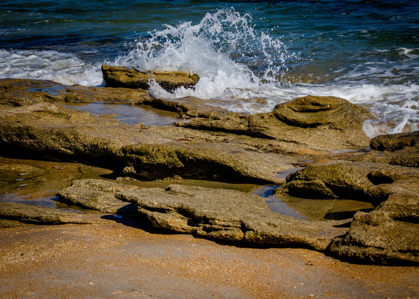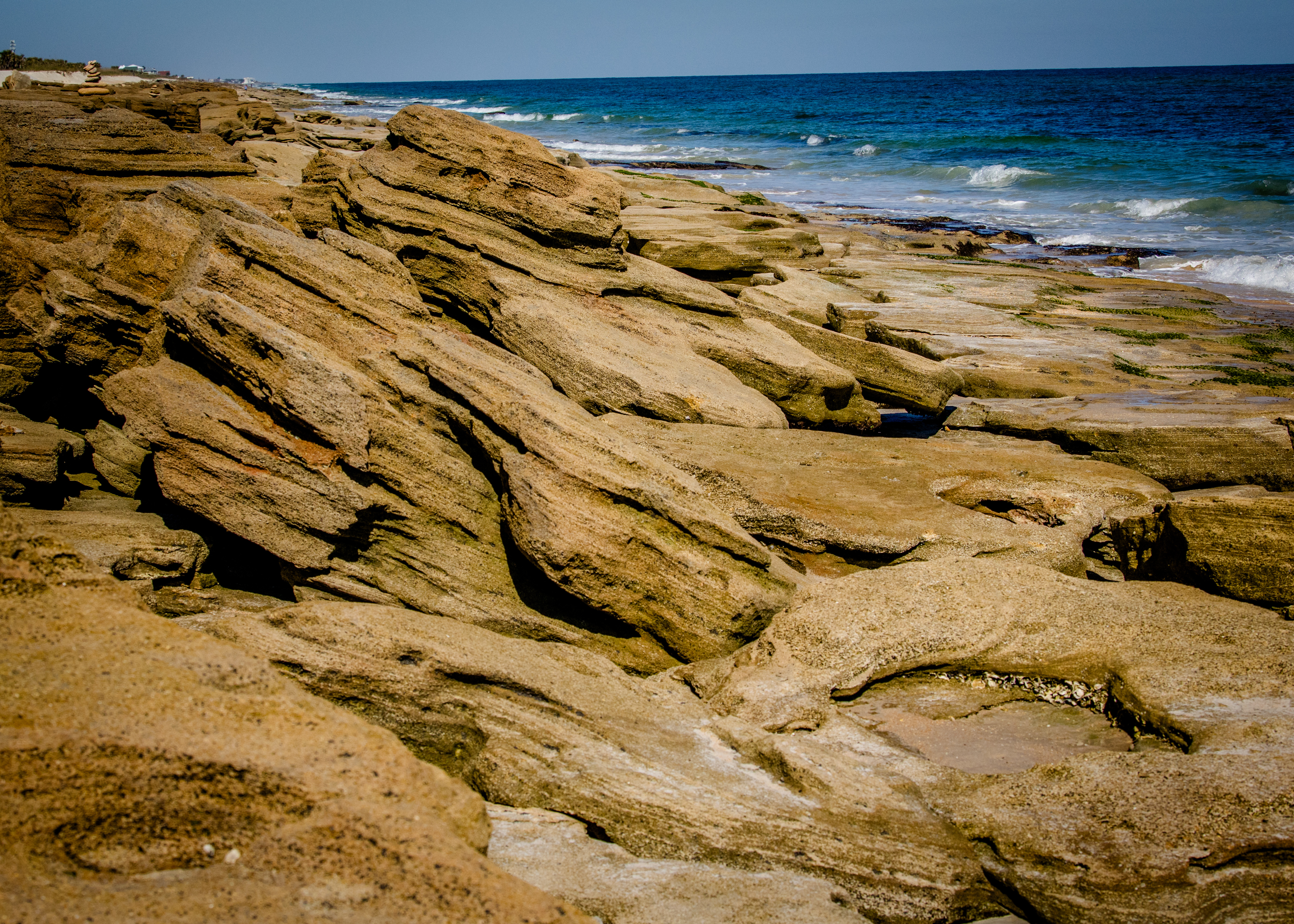 After spending time hiking in the River to Sea Preserve (Ocean to Matanzas River) near Marineland, I decided to revisit the Coquina Rocks along the ocean in Washington Oaks Gardens State Park. It had been at least three years since my last visit and shockingly the vista has significantly changed. As a result of the recent hurricanes and storms, the sand was washed away, and the rocks were at lease 50% more visible.