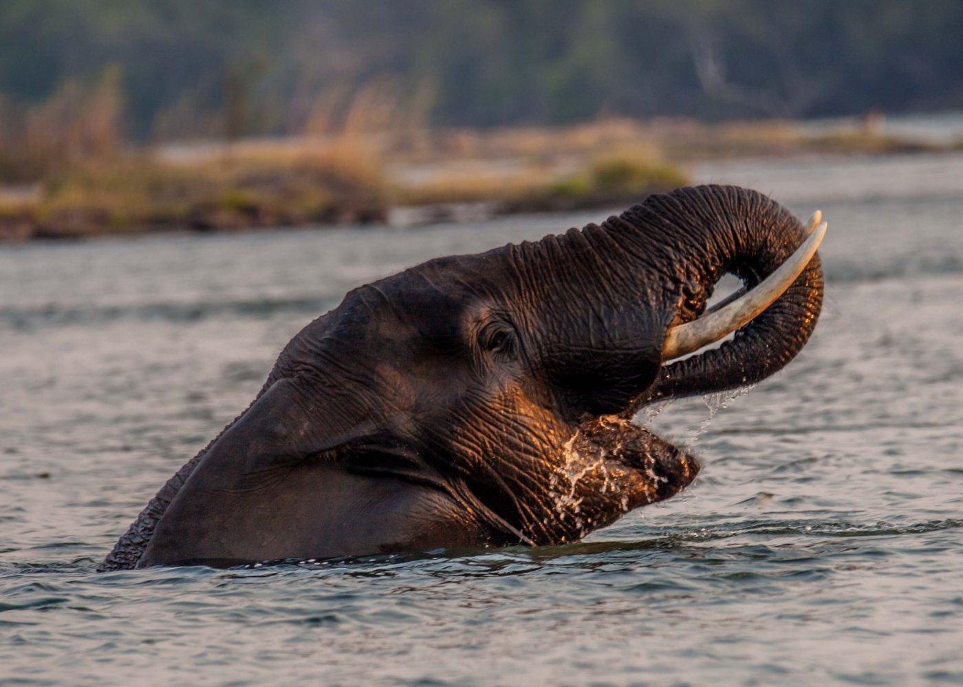 Today’s travel was by air to Livingston Zambia (formerly Rhodesia) and across the boarder by bus to Victoria Falls Zimbabwe. Unemployment here is above 50% & the currency has been changed to the USD – no matter how much paper money they printed – it wasn’t worth the paper it upon which it was written. The largest bill the government printed was a 100 trillion note. Staying for two nights at the Victoria Falls Safari Lodge. After check-in we boarded a boat for a sunset cruise and wildlife viewing along the Zambezi River (4th longest river in Africa). The elephants were taking their evening bath & the hippos were playfully fighting. Our late dinner was Wort Hog – really delicious!