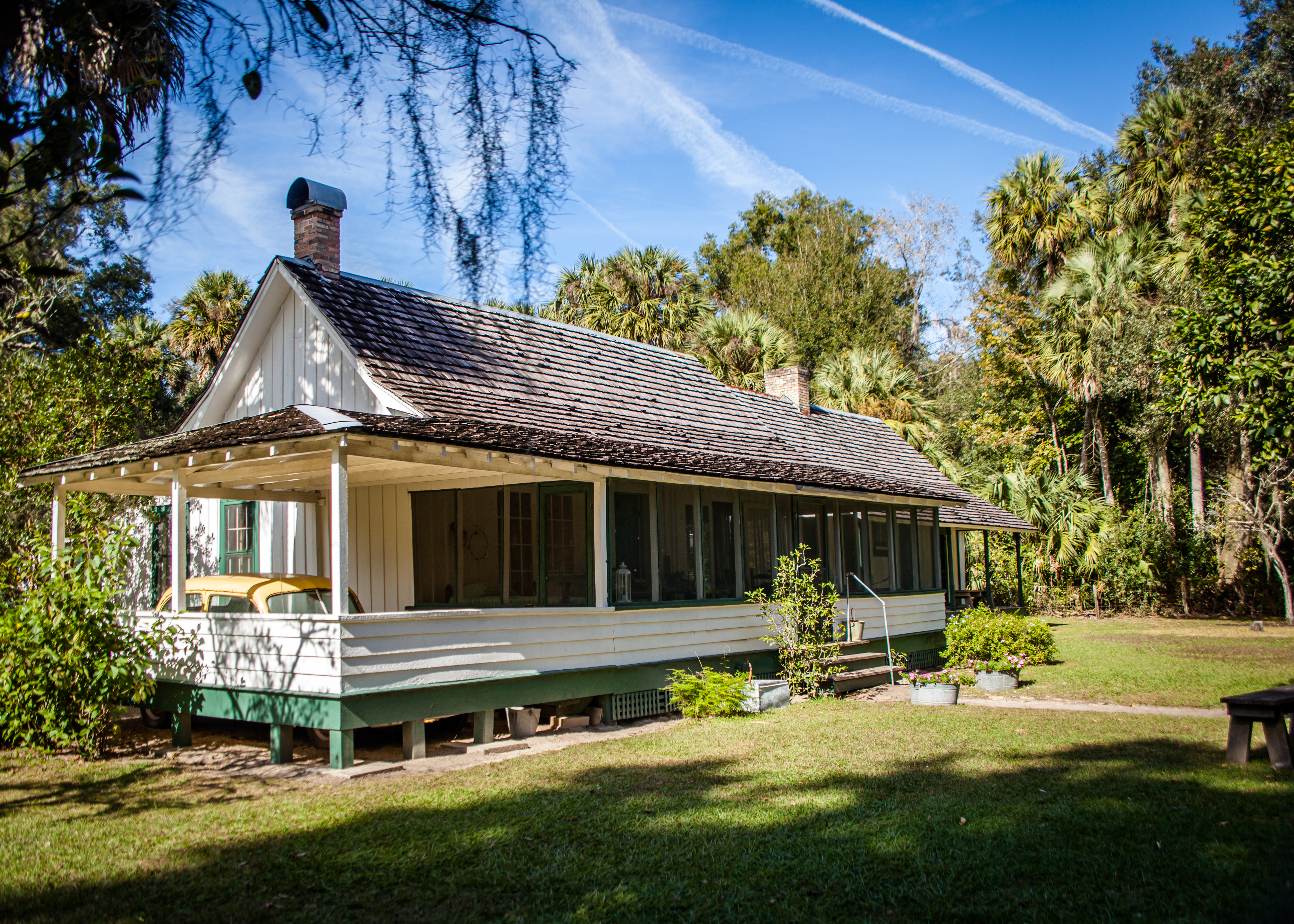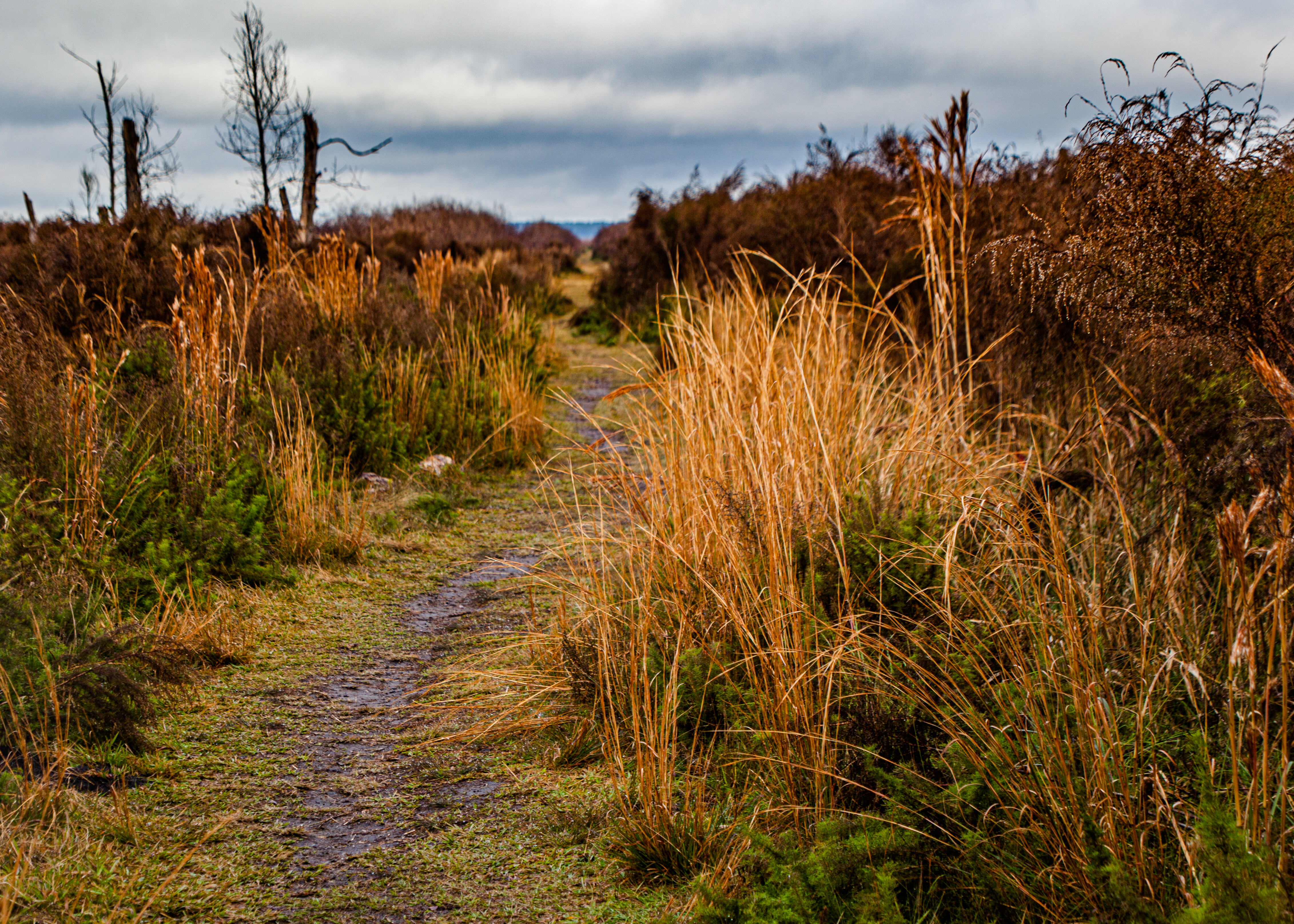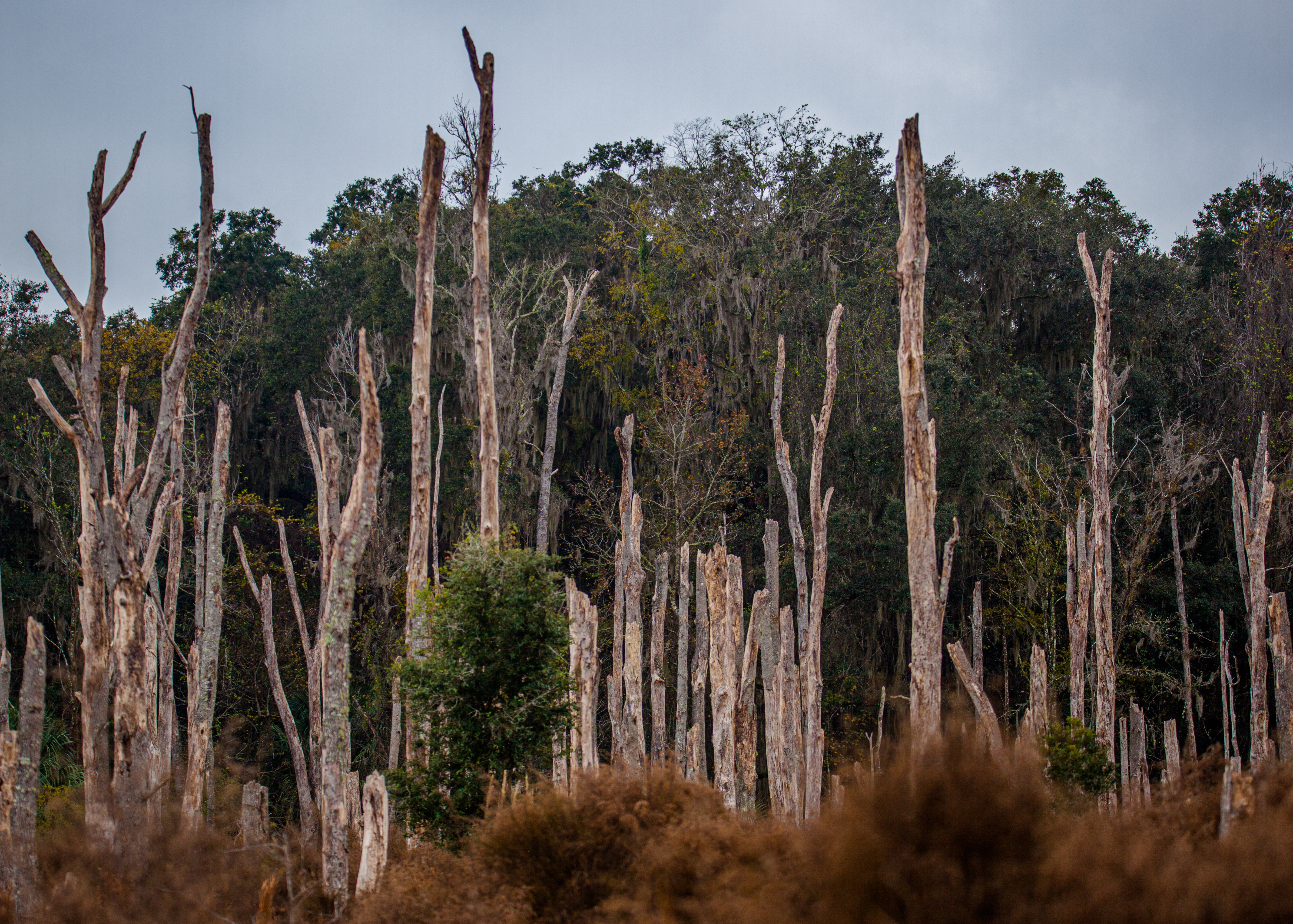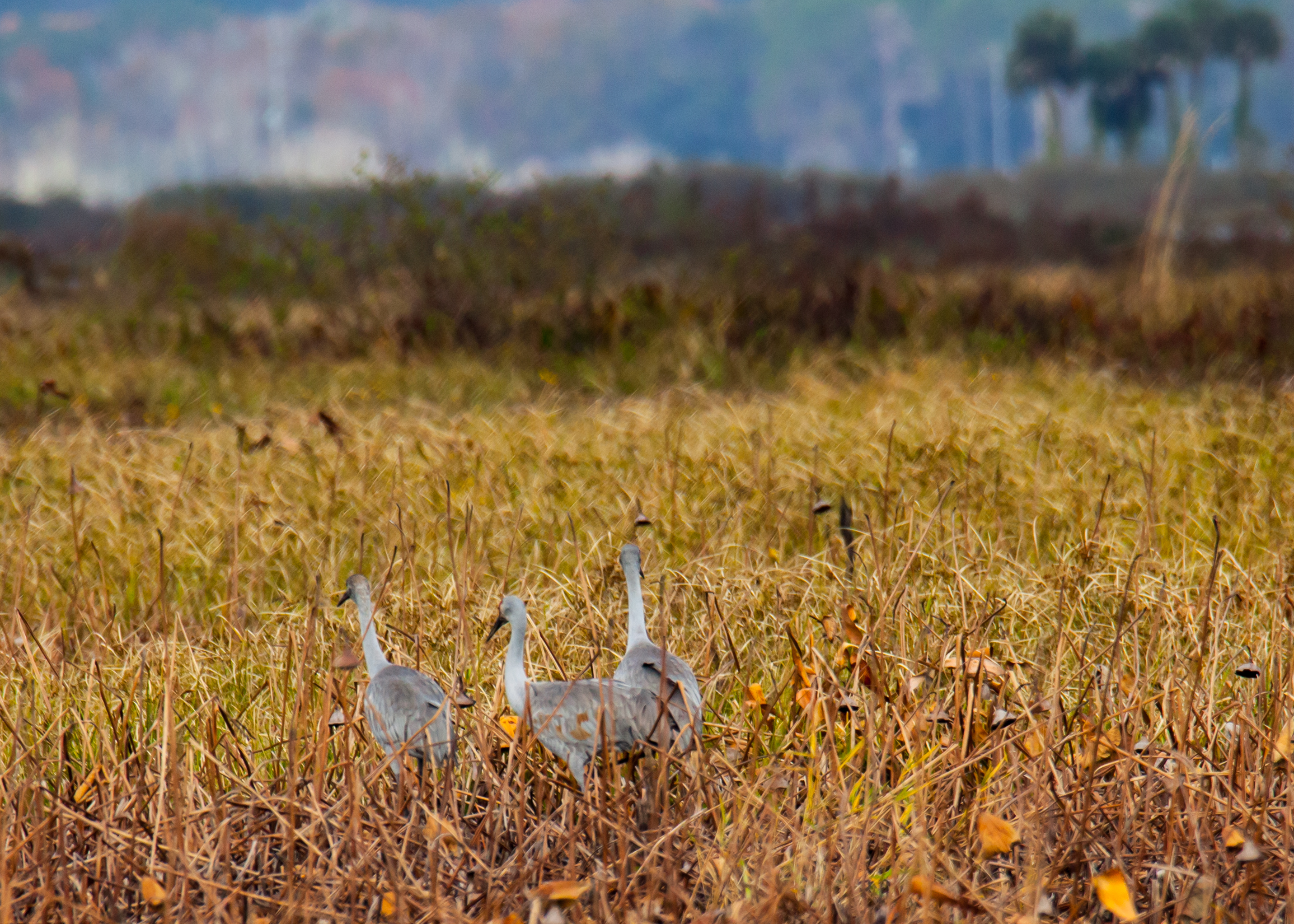Paynes Prairie Preserve State Park is a Florida State Park, encompassing a 21,000-acre savanna in Alachua County, Florida lying between Micanopy and Gainesville. It is also a U.S. National Natural Landmark. Paynes Prairie is unique in many ways. Nowhere else in Florida can visitors experience wild-roaming bison (all we saw were bison chips) and horses. Nearly 300 species of birds also frequent the park along with alligators, deer and many other animals. The day started out rainy and chilly but improved throughout the day. We started the day with umbrellas in hand on the Lake Wauberg trail – just .8 miles with views of the lake and the savanna. Then on to the Bolen Bluff Trail a 2.5 mile loop with a spur trail into the savanna with an observation tower which gave us a good view of this expansive park. Finally the 3 mile La Chula Trail which is a mix of boardwalks and a grassy trail around the Alachua Sink with sightings of alligators and many birds.
