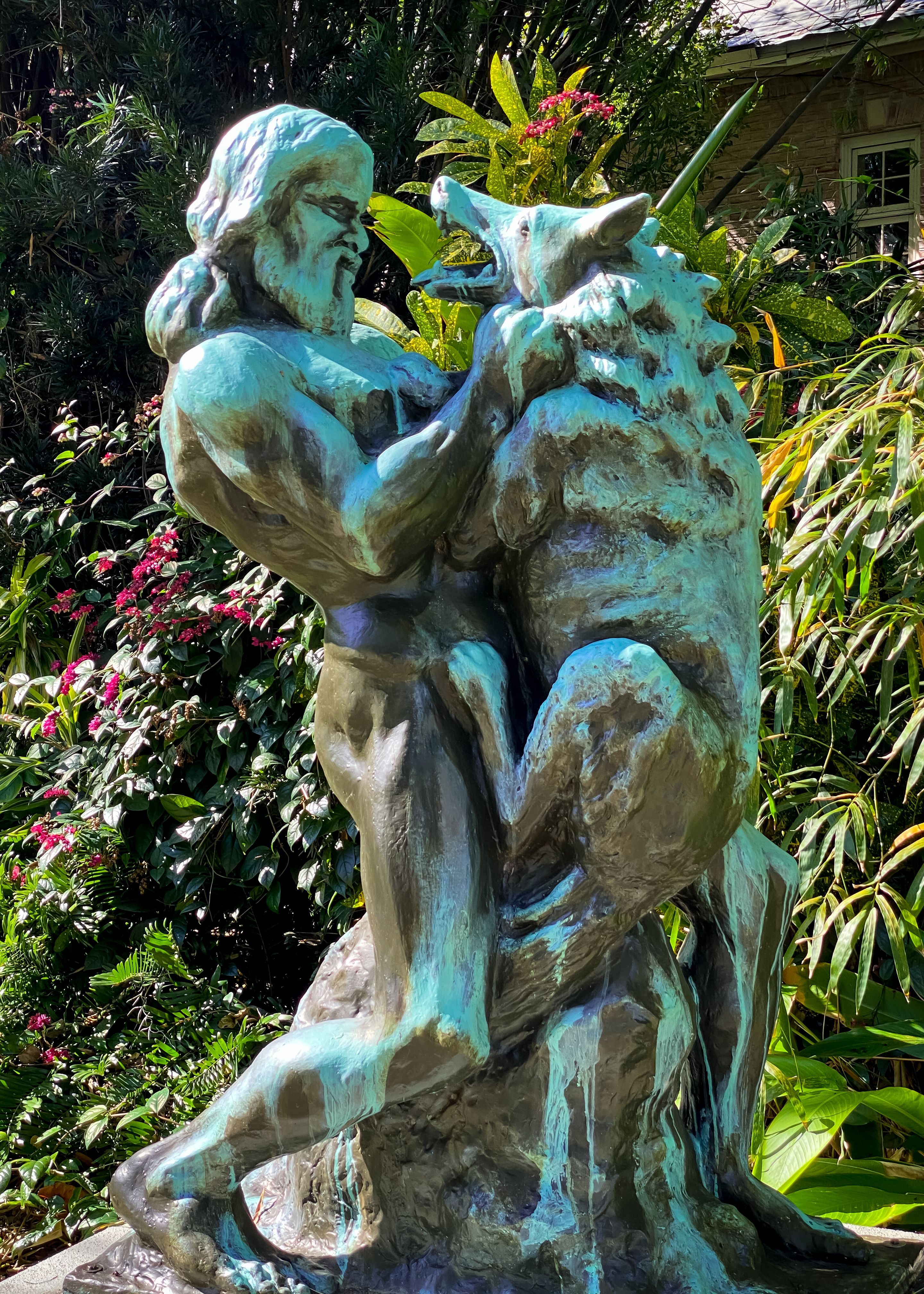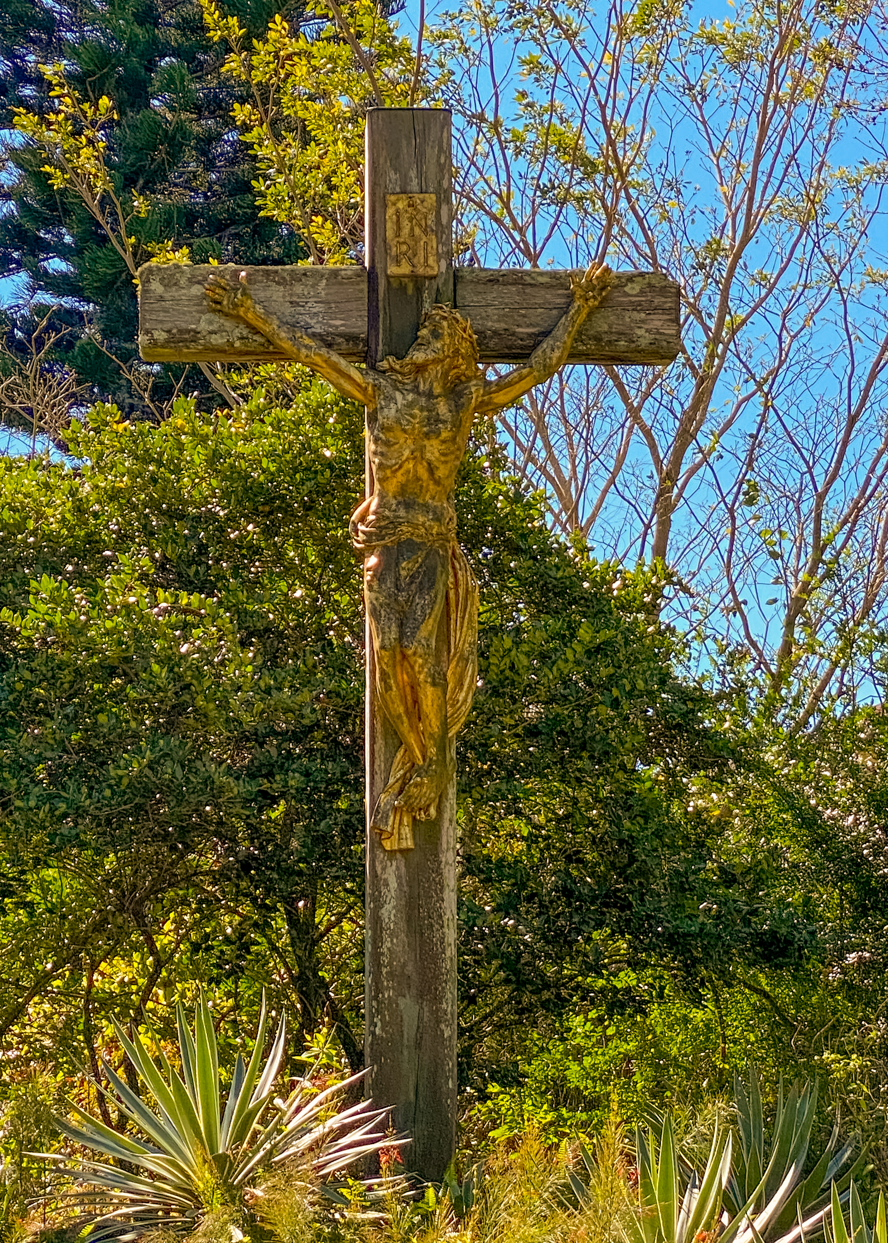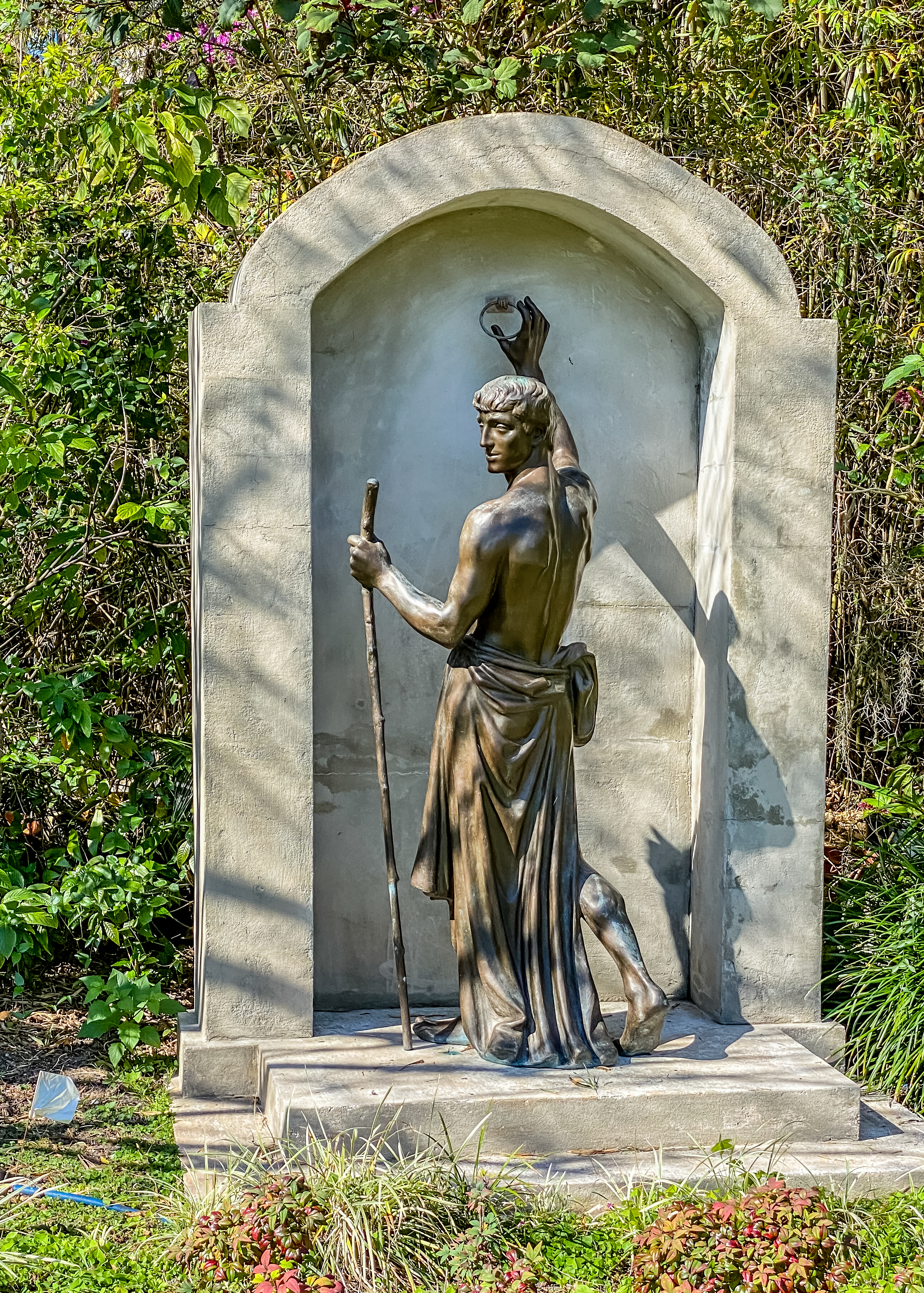 Along the way, we admired the many large oak and cypress trees and used one of several benches to watch the river. We’re told it’s a good place for birding and wildlife viewing, but our only sighting was an alligator. Where does the unusual name come from?