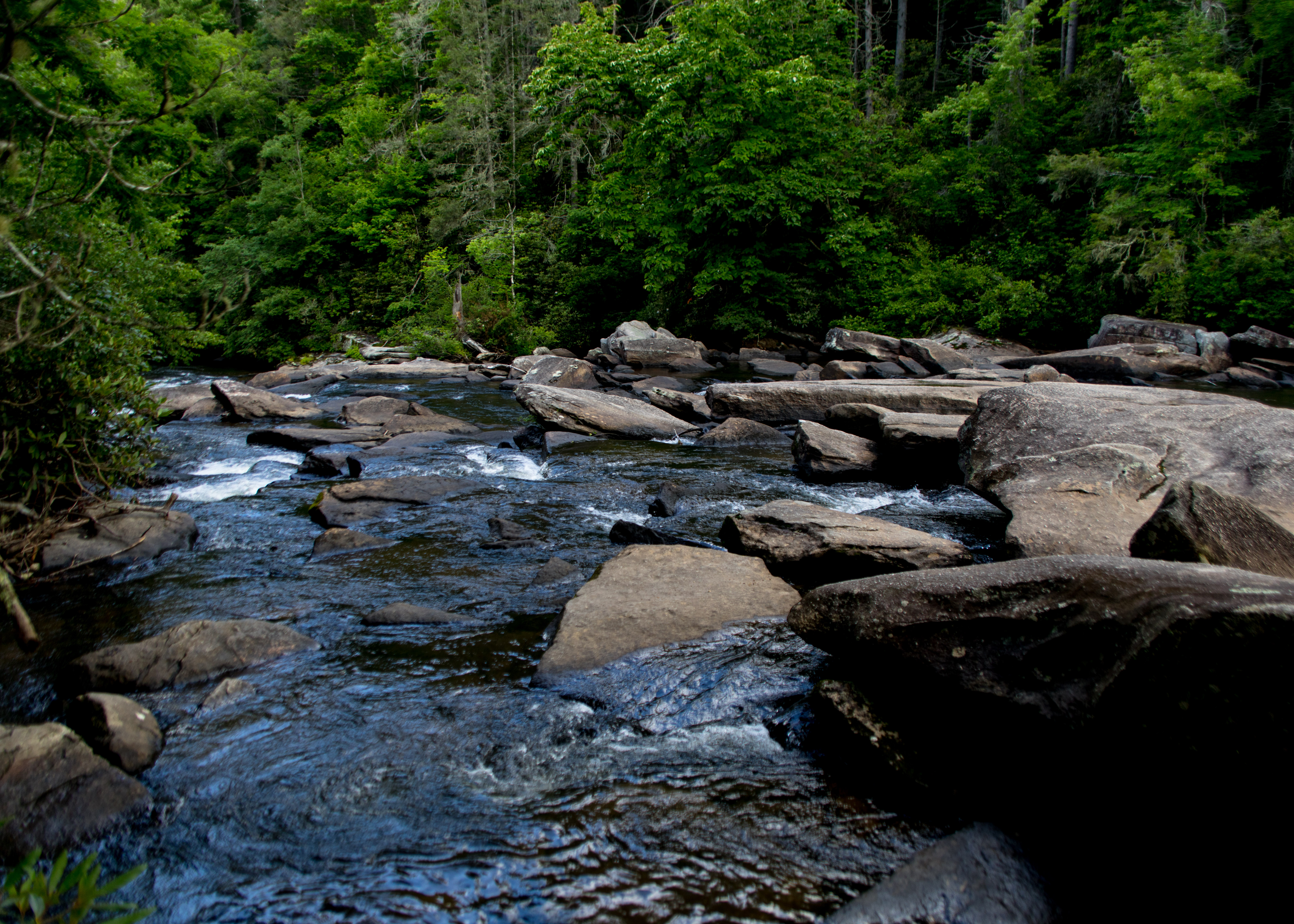 • We hiked the Panthertown Valley Trail, Wilderness Falls Trail and Deep Gap Trail to view the following falls. The first falls was Wilderness Falls: