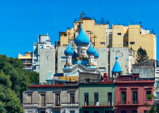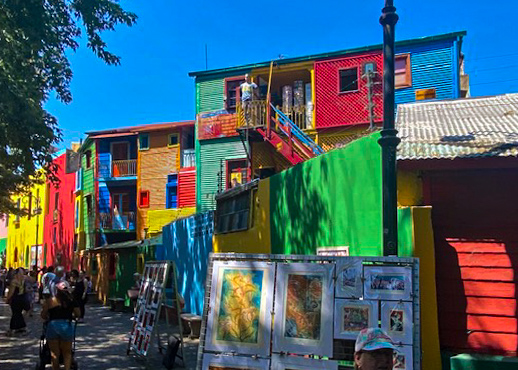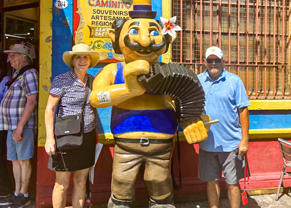 We had an early morning start to discover the city’s highlights on a tour that included the Plaza de Mayo, Metropolitan Cathedral and Casa Rosada (government palace), where we could see the balcony where Eva and Juan Peron made their speeches. The stunning metallic flower sculpture opened & closed throughout the day. The cathedral was where Francis presided before he was elected Pope. The changing of the guard was in the cathedral at the tomb of Gen Jose de san Martin. Then we moved onto the colorful La Boca neighborhood, a working-class barrio, and the old quarters of San Telmo and Caminito, a mix of colonial style homes, narrow lanes, artists’ lofts, and very trendy cafes. Then we drove to the Recoleta Cemetery, the final resting place of many of the wealthiest and most important Argentine historical figures. The grounds here cover more than four city blocks, filled with tombs adorned by works of local and international sculptors, and more than 6,400 mausoleums including the tomb of Eva “Evita” Peron, always heaped with flowers and letters from adoring fans – too bad there was a forty-five-minute line to see the tomb, so we passed. We spent the remainder of the day exploring some of Buenos Aires neighborhoods and the fabulous galleria on our own. Prior to dinner we “enjoyed” private tango lesson with professional Argentine Tango dancers. Dinner was on our own and we headed to a local grill for a dinner of suckling pig and grilled flank steak – big enough for 3.