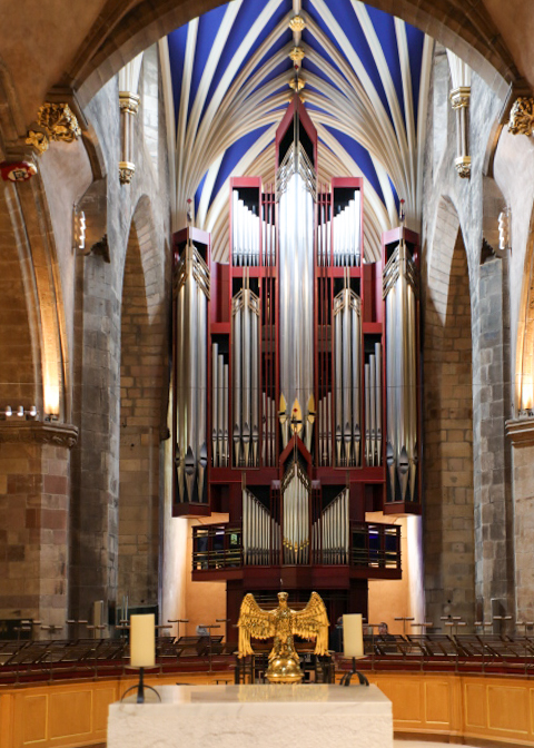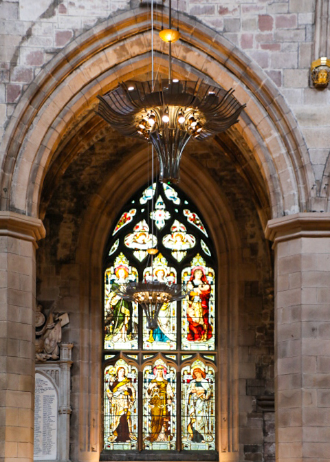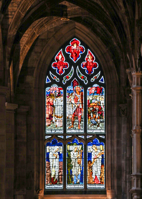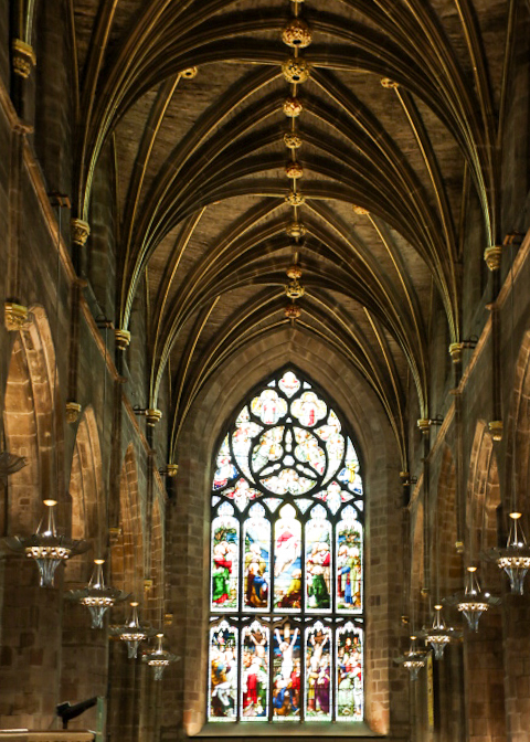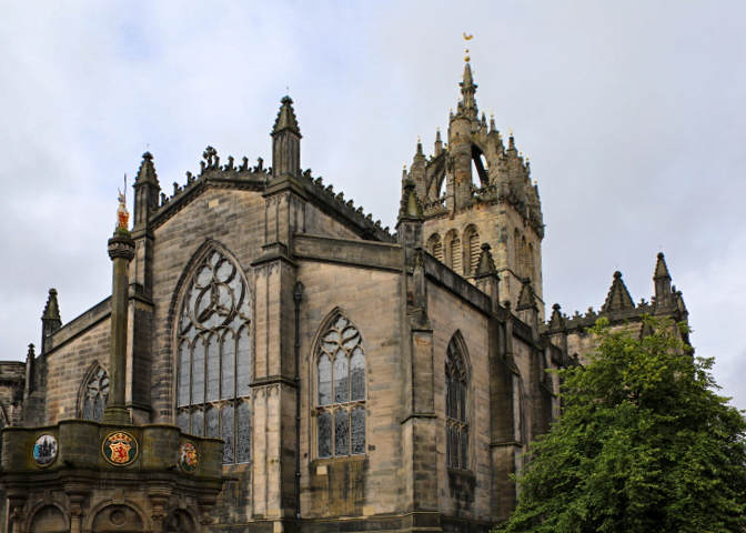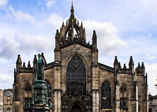 Our day started with a visit to St. Giles’ Cathedral. This is the flagship Church of Scotland – it is called the “Mother Church of Presbyterianism.” The interior serves as a kind of Scottish Westminster Abbey, filled with monuments, statues, plaques, and stained-glass windows dedicated to great Scots in history.