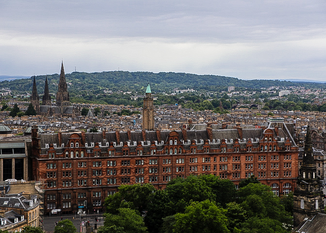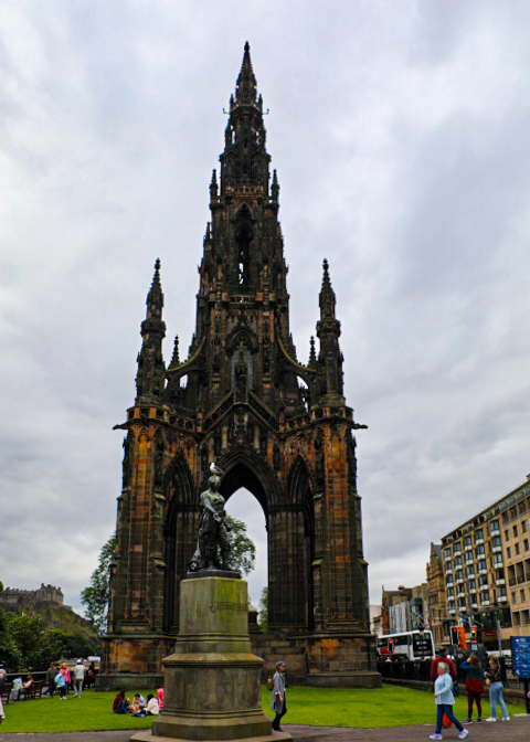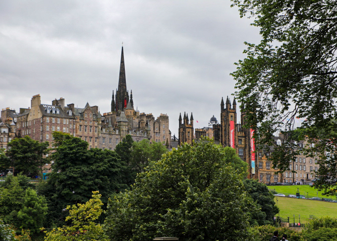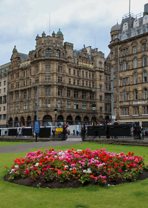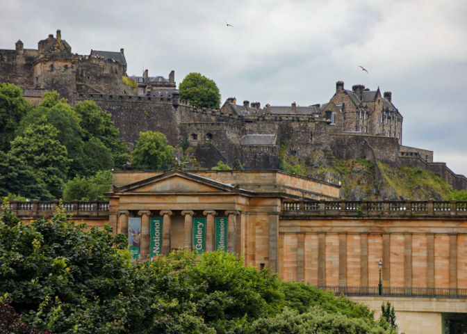 From St. Giles’ we headed over the Waverley Bridge to New Town — Georgian Edinburgh — built during the early 18th century. From the bridge you get a good view of the Scottish National Gallery (with the castle in the background) and the Scott Memorial (dedicated to Sir Walter Scott). The tower is 61.11 metres (200 feet 6 inches) tall and construction took place from 1841 to 1844. We walked along Prince and Gardens Streets, admiring the buildings and shops. Then onto St. Andrews Square and its famous lion. Along Prince Street Gardens you get great views of the back of Edinburgh Castle heading to Charlotte Square and then on to a stop at the Scottish National Gallery. Our day ended with a final dinner in Edinbrurgh and the overnight train (Caladonia Express) to London.