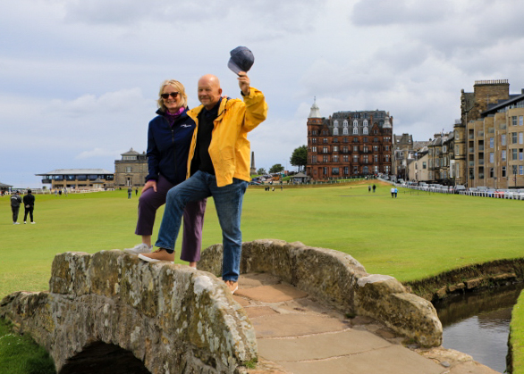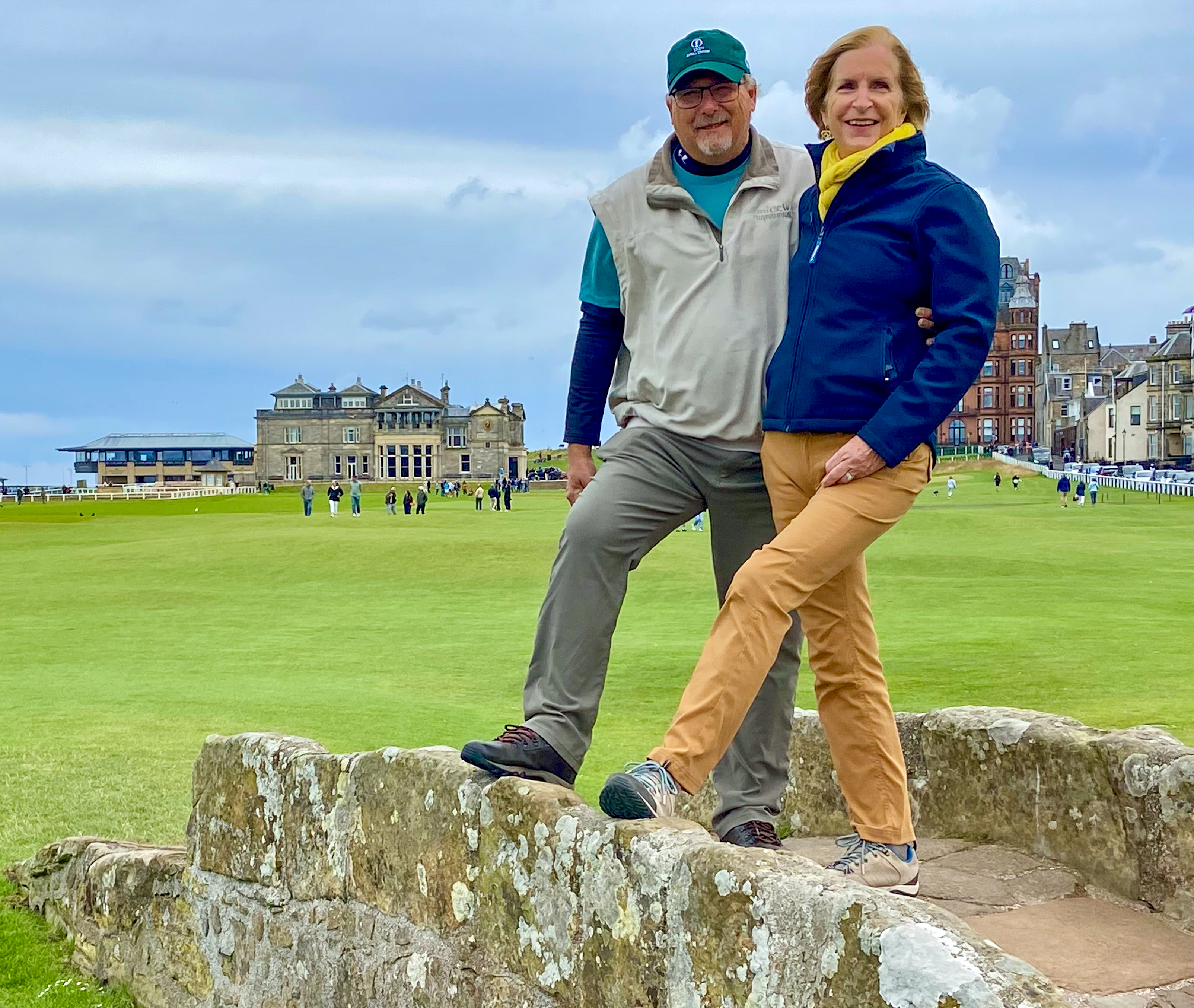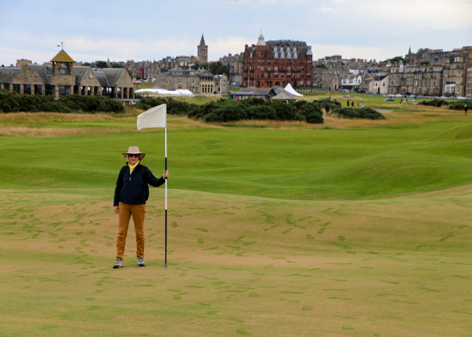 It’s Sunday and the Old Course at St. Andrews is closed to golfers but open to all to walk the course. St. Andrews is a coastal town in Scotland which hosts Scotland’s top university and the world’s most famous golf course. Its medieval Old Town has ruins of a castle and cathedral and sandy beaches. It was less than a 2-hour ride from Edinburgh so it fit into our schedule. The course gets a tremendous amount of play and is not in the Open rotation this year, so it seemed in rough shape. However, walking the course, you get an understanding of the contours of the greens and fairways (and the severe bunkering) – makes our PB courses look a lot more playable.