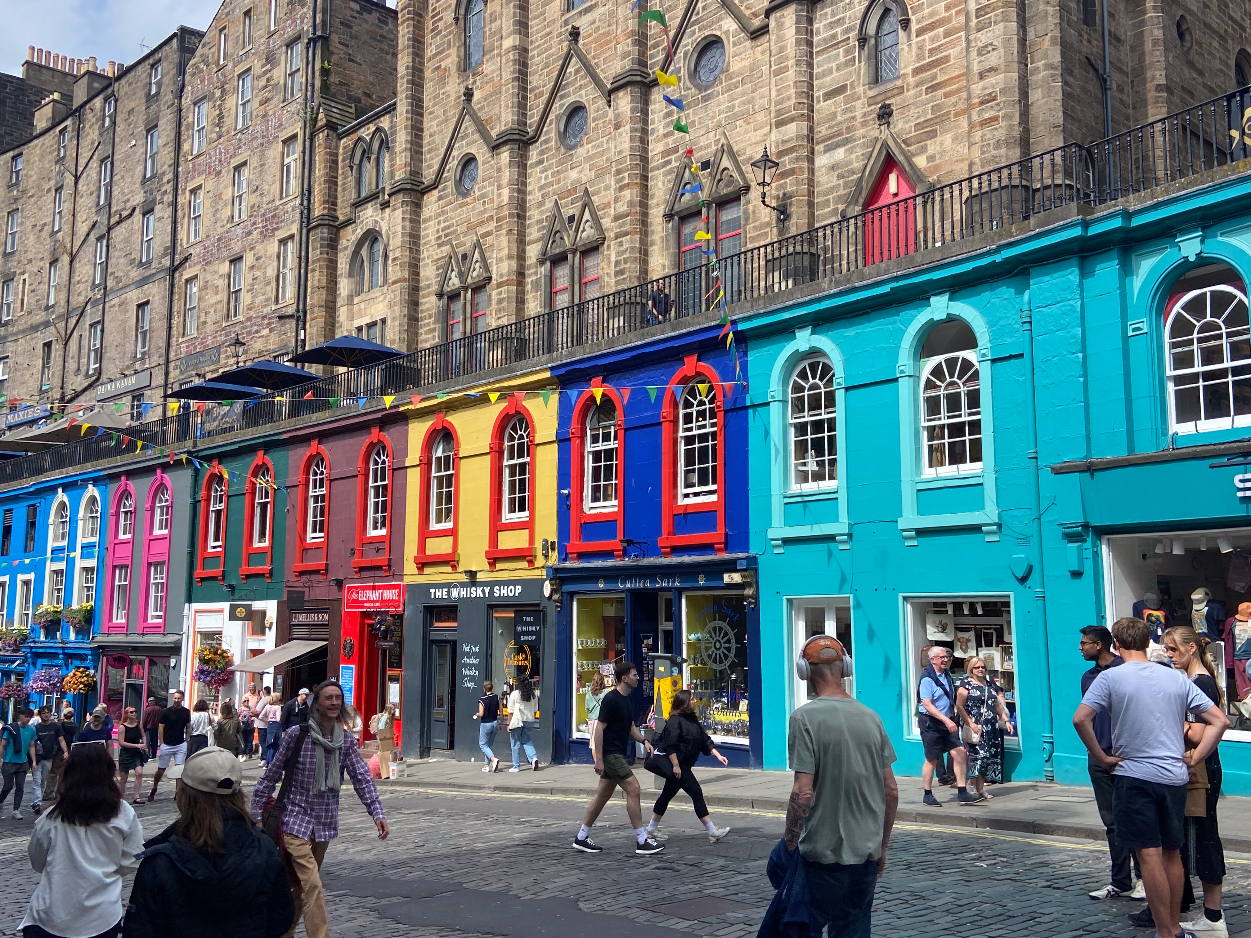 Today is our first full day in Edinburgh, Scotland. To get an understanding of Old Town, we walked the Royal Mile. This walk takes place in the historic heart of Old Town, the medieval city established as a royal burgh by King David I in the 12th century. Situated on a mile-long hill, Old Town (whose protective walls were knocked down and refortified throughout history) is the most evocative district in Edinburgh. In large part, the city’s current reputation for beauty and romance rests upon the appearance of the Royal Mile and its surrounding streets. After taking in the sights along the Mile, we toured Edinburgh Castle at the top of the hill (an extinct volcano). For more details on the history of the castle, see – https://www.edinburghcastle.scot/the-castle/history. As a fitting close to a long day, we enjoyed the Scotch Whisky Experience – a great audio/visual experience and, of course, the tasting of whisky from the 5 production regions of Scotland. Fitting place to find out about Scotch – their collection has over 3400 bottles in all shapes and sizes – from chess sets to golf bags to people and yes jugs and bottles.