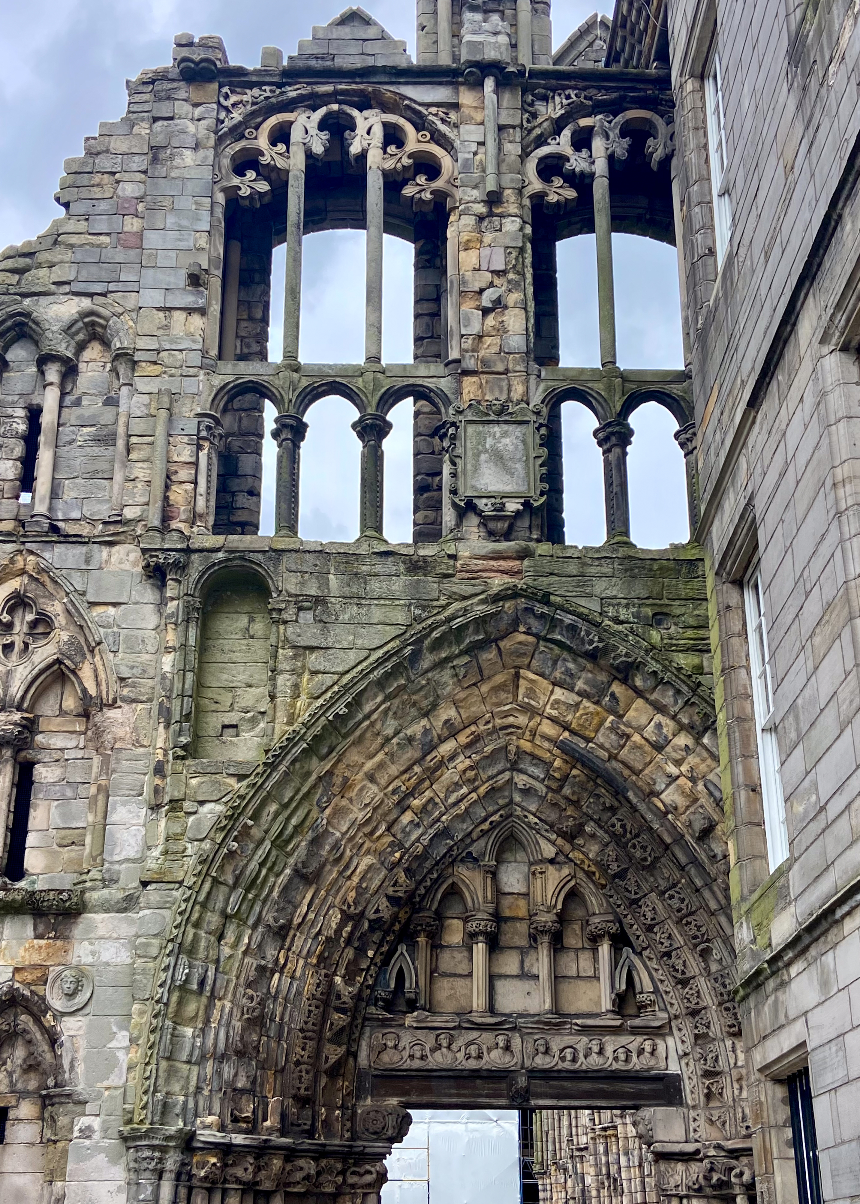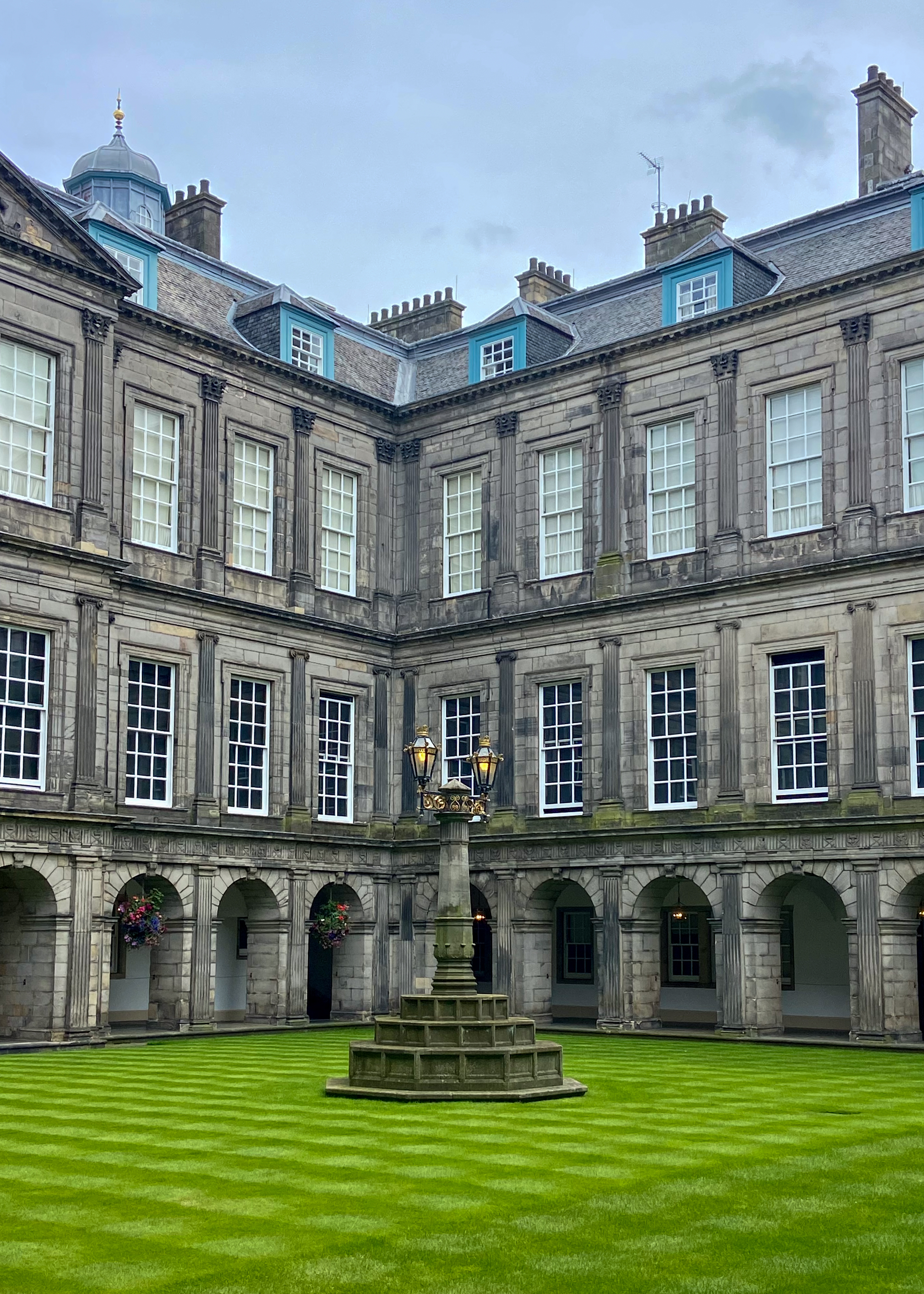 So my verbal highlights — We began our visit by wandering the staterooms – with amazing tapestries that adorn the walls. The skilled needlework draws a vivid image of the palace’s history, as well as playing an important role in keeping the palace warm. There are also many paintings depicting historical figures and events in Scotland’s past. Also, the rooms display beautiful objects including china and opulent fabrics. The carved plaster ceilings are also impressive. The Great Gallery’s walls are covered with paintings of over 100 Scottish rulers.