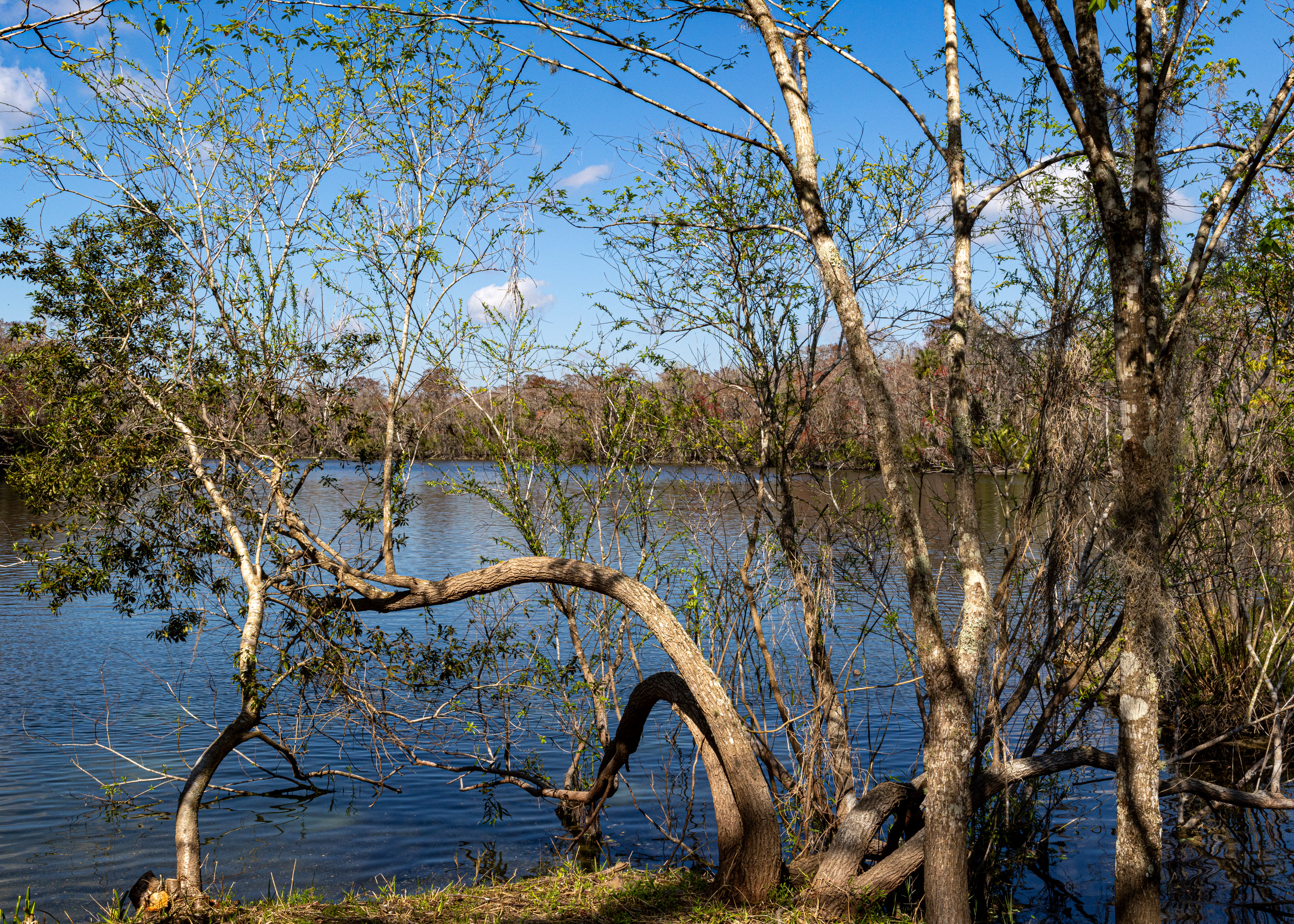 Welaka State Forest, located in northeastern Florida along the east bank of the St. Johns River, is a beautiful natural area offering a variety of outdoor activities. It spans over 2,287 acres and features diverse ecosystems, including river swamps, pine flatwoods, and sandhills. Visitors can enjoy hiking, birdwatching, fishing, and even horseback riding, as the forest includes an equestrian campground with facilities. One of the highlights is Mud Spring, which flows clear spring water into a half-mile spring run that connects to the St. Johns River. The forest also has over four miles of river frontage, providing scenic views and opportunities for wildlife observation.