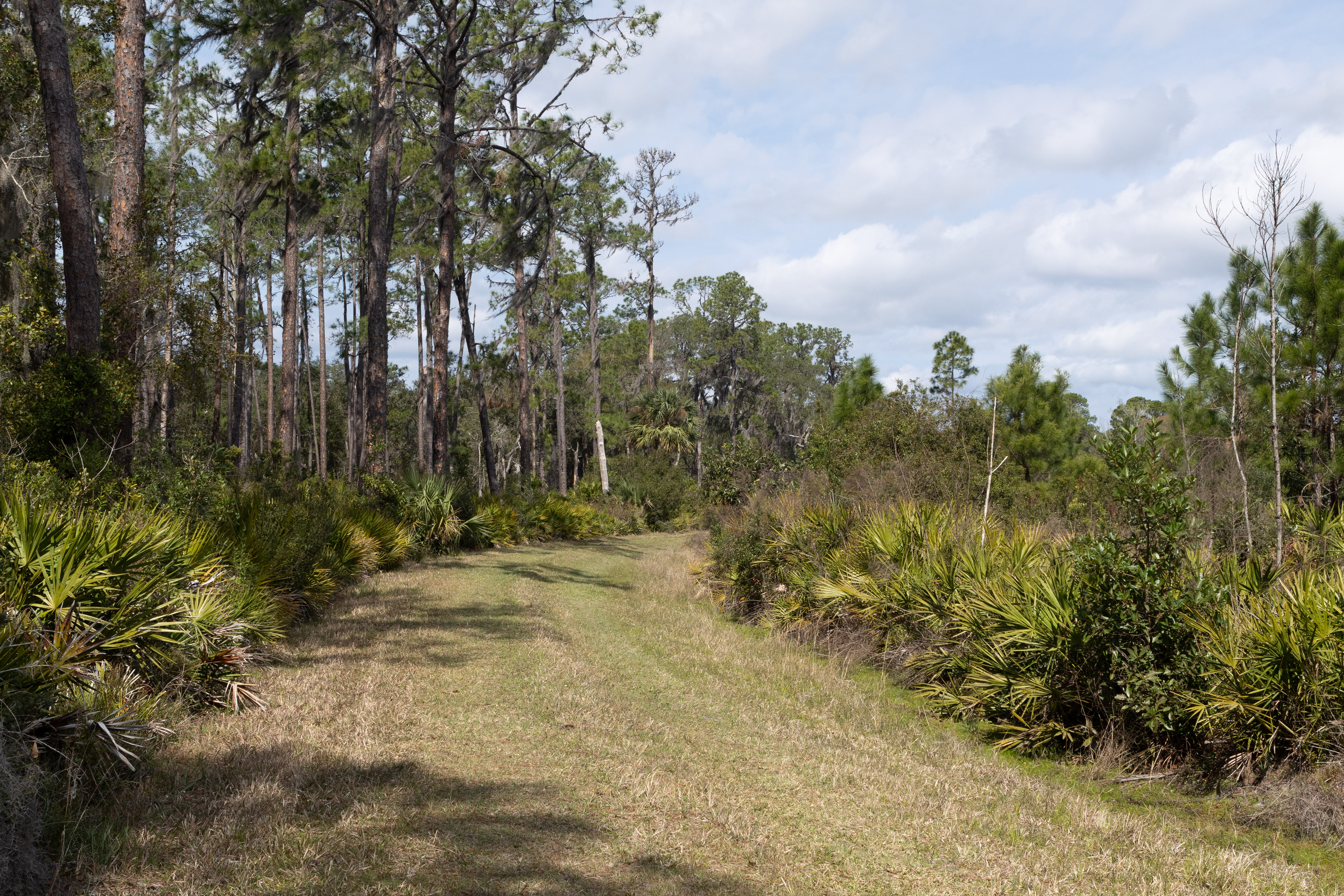 The Bluffton Interpretive Trail is a 1.2-mile loop located in the Lake George State Forest near Astor, Florida. It’s an easy trail, and is perfect for birding, camping, and fishing. The trail is open year-round and offers a peaceful experience with minimal crowds. However, dogs aren’t allowed on this trail. The trail features interpretive markers that provide insights into the area’s natural and historical significance. There’s also a boardwalk leading to a fishing pier.